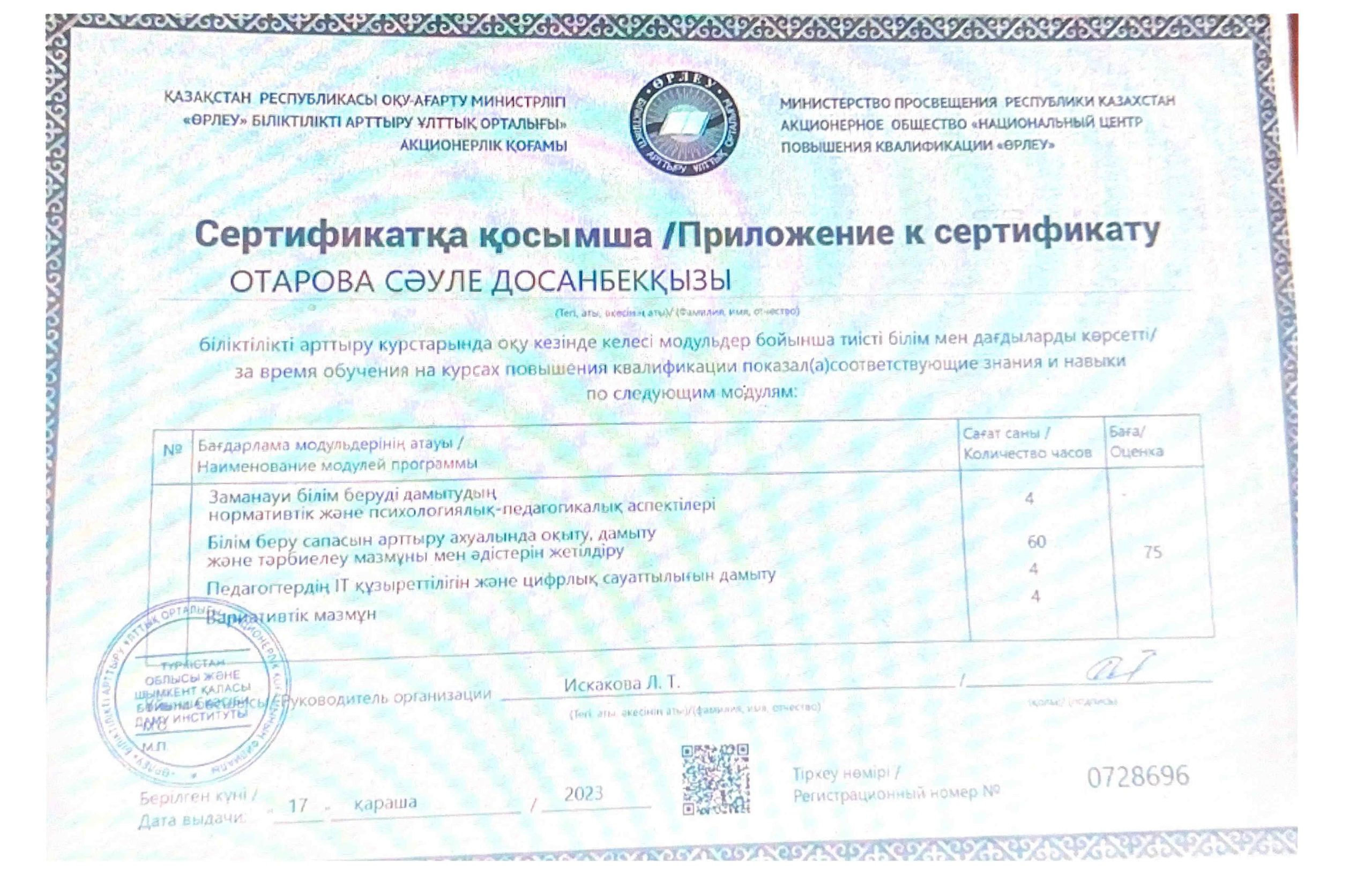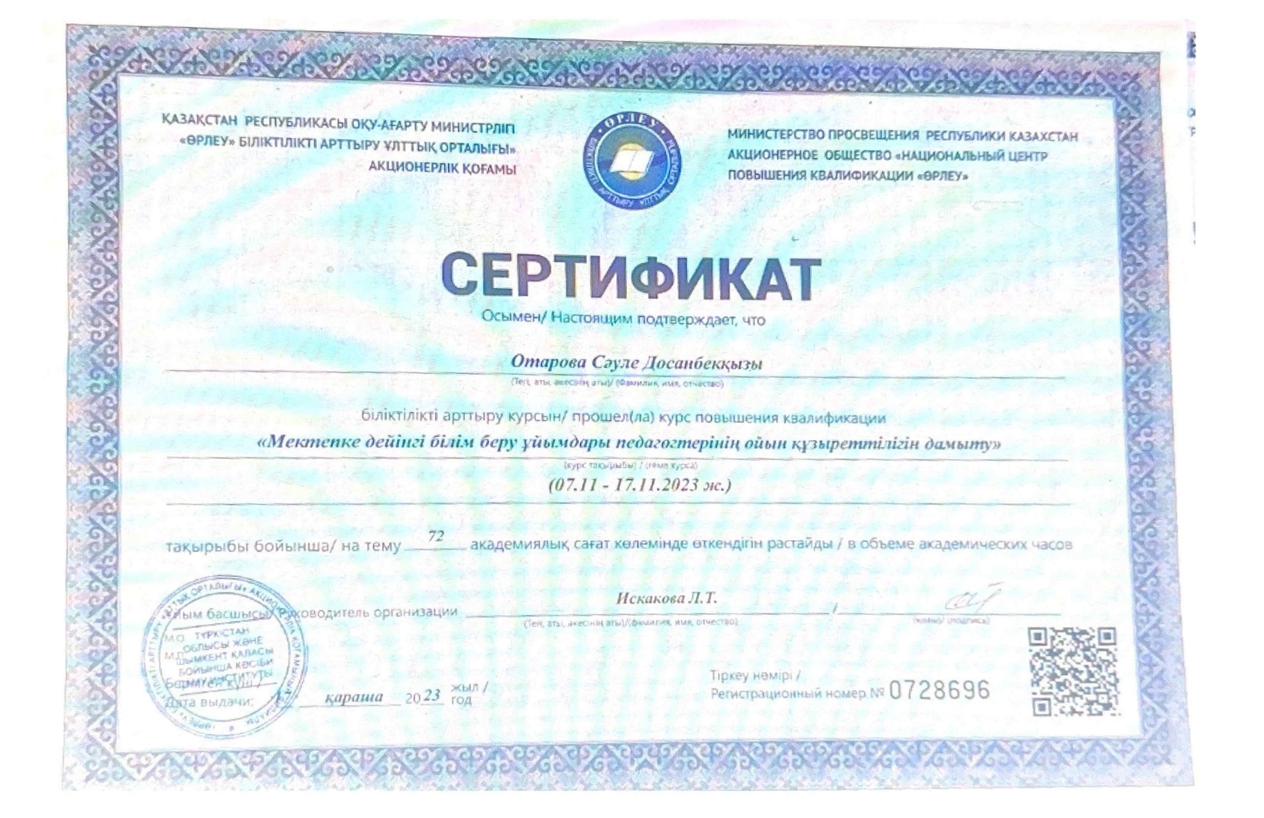 ПЕДАГОГТАРДЫҢ БІЛІКТІЛІК АРТТЫРУЫ