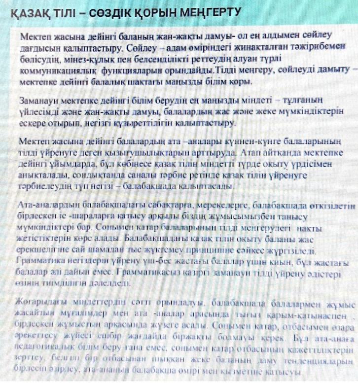 ҚАЗАҚ ТІЛІ – СӨЗДІК ҚОРЫН МЕҢГЕРТУ