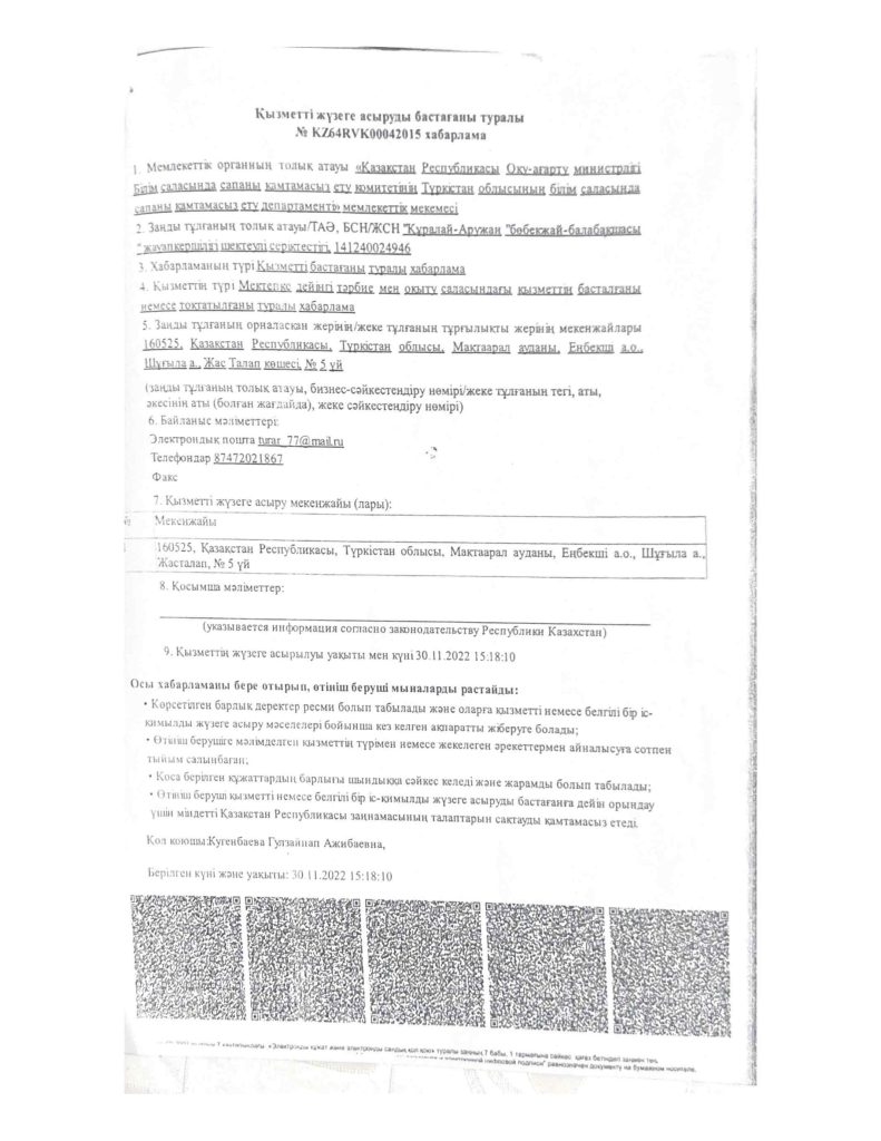 «Құралай-Аружан» бөбекжай балабақшасы